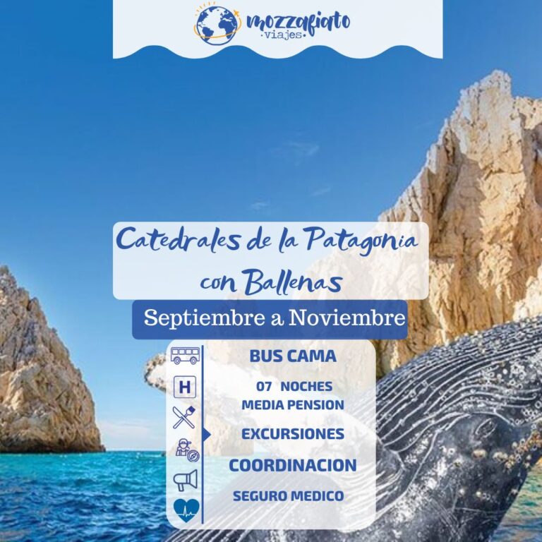 Catedrales de la Patagonia con Ballenas – Septiembre a Noviembre